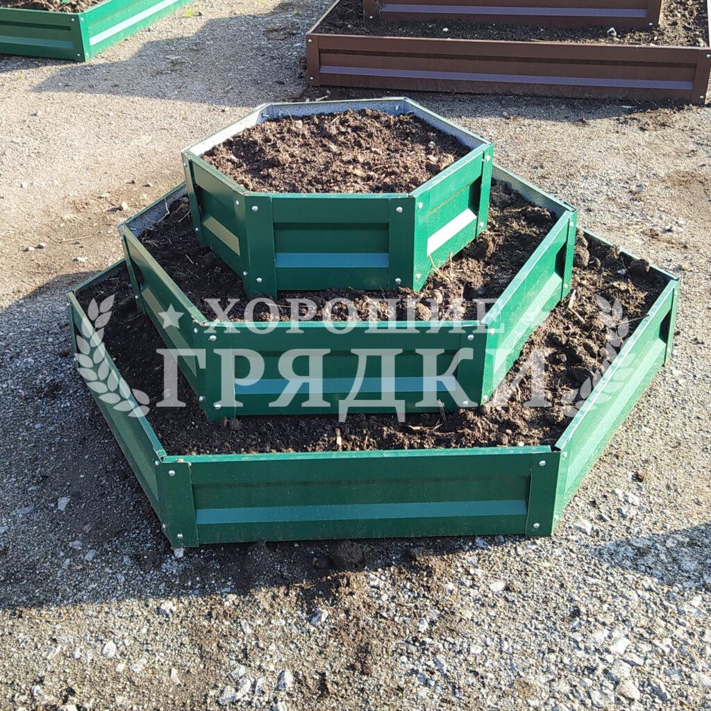 Клумба зеленая «Шестигранная 3 яруса» Ø 1.8м-1.4м-1м