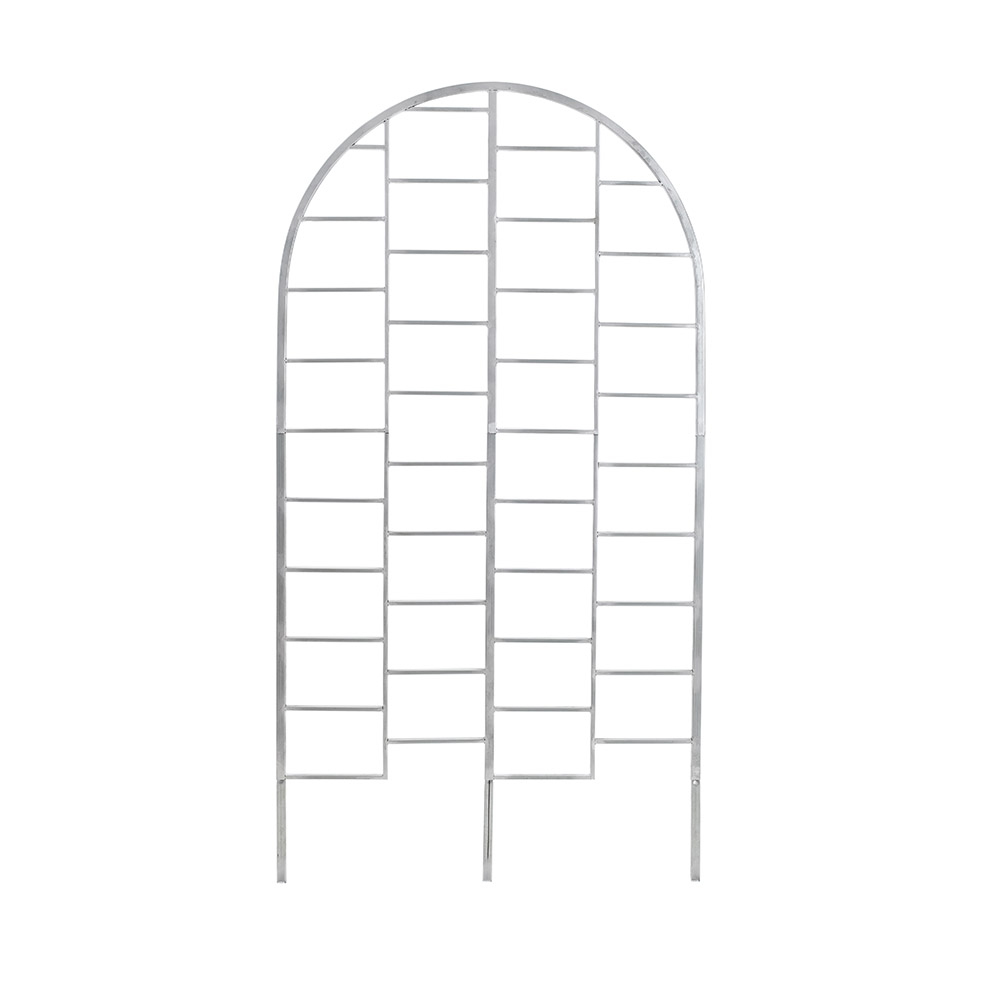 Внимание! Новая вариация товара: в верхней части изменен рисунок. Стало проще собирать: состоит всего их двух секций+ножки. Также новые размеры упаковки: 93 см*82 см*5 см. Вес с коробкой – 6,2 кг, вес без упаковки – 4,95 кг. Шпалера для цветов, вьющихся растений и винограда из оцинкованной трубы. Высота над землей – 150 см., ширина – 92 см. Высота вместе с ножками 172 см, длина ножек – 22 см.